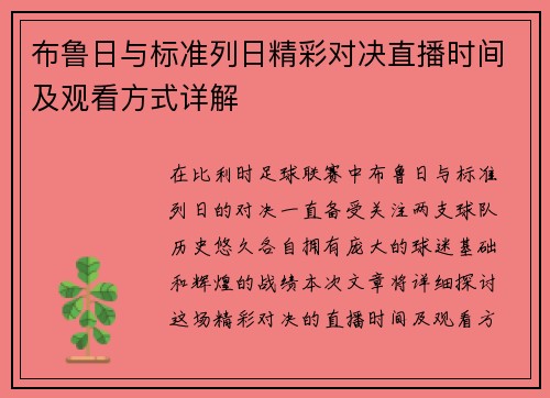 本文将对布城与伯顿之间的历史交锋战绩进行深入分析,并对两队近期表现进行详细对比。首先,我们将回顾两队在历史交锋中的胜负情况,探讨各自的优势和劣势。接着,将分析近期比赛的表现,包括球队状态、球员状态以及战术变化等方面。此外,我们还会关注主客场表现对双方交锋结果的影响,最后总结这两支球队在未来交手时可能出现的发展趋势和关键因素。通过这些方面的分析,希望读者能够更全面地了解布城与伯顿之间的较量。 1、...